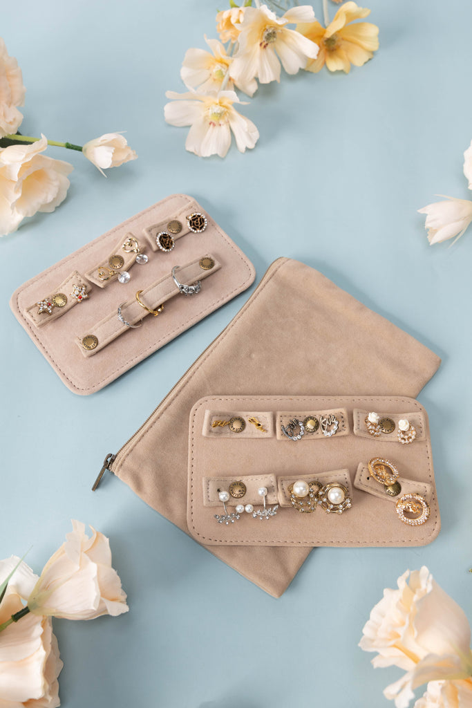 It is made with very soft velvet, same as the cover pouch, can protect your earrings and rings perfectly.